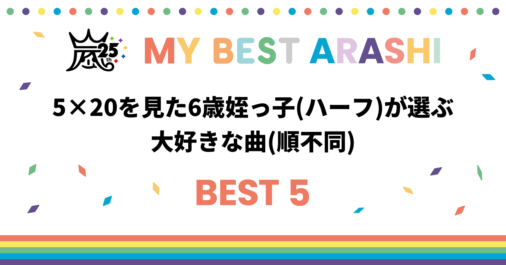 5×20を見た6歳姪っ子(ハーフ)が選ぶ大好きな曲(順不同)